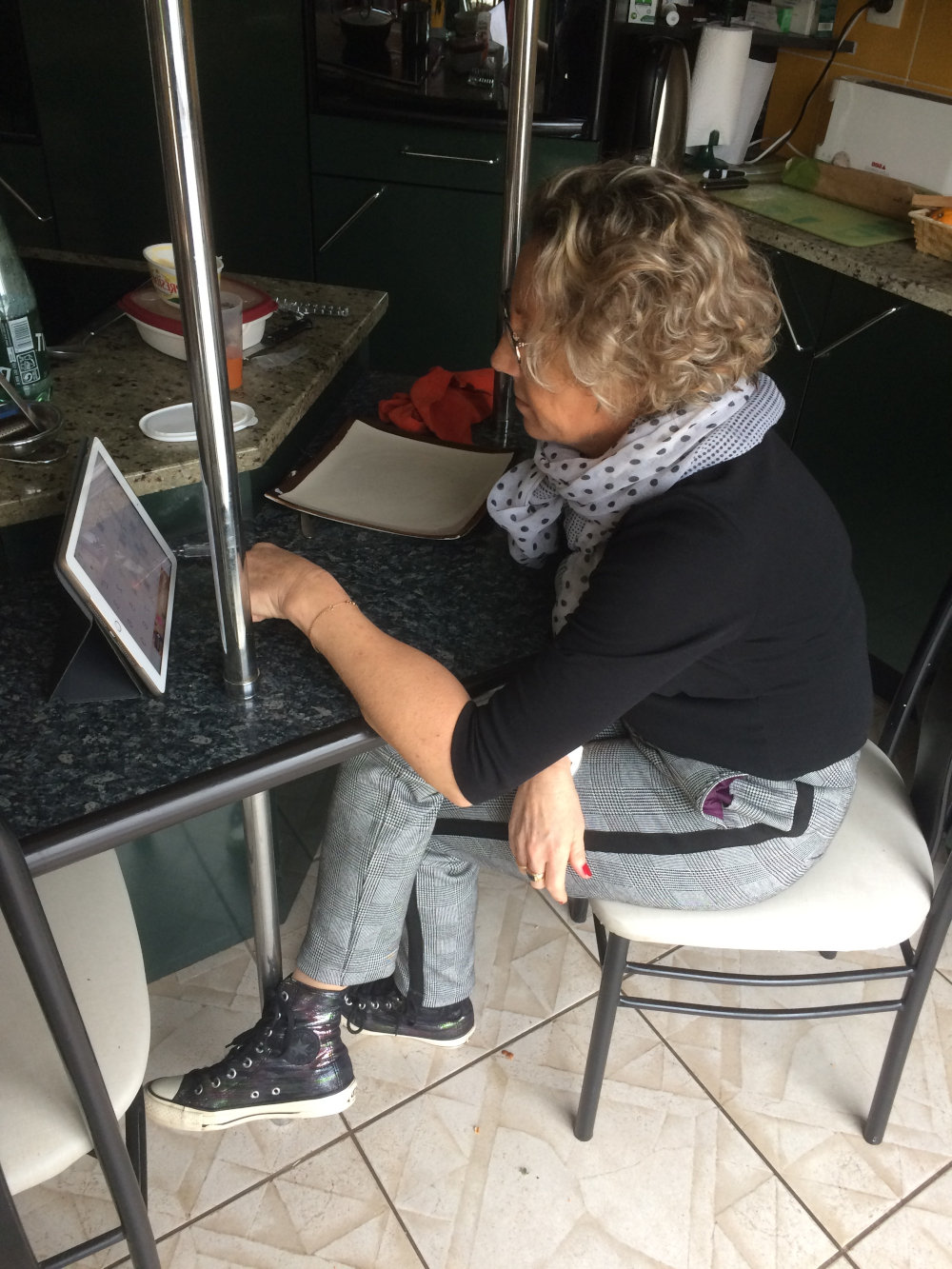Le dos droit et fidèle au principe de multiplication des points d’appui, les avant-bras reposant sur le lutrin, les coudes soutenus; le regard est à l’oblique, sans fatiguer épaules et cou.
